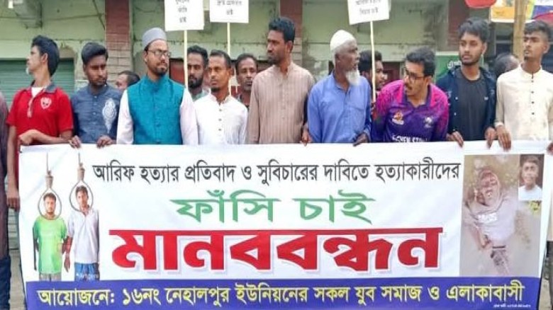 শুক্রবার আরিফ হত্যা মামলার আসামিদের ফাঁসির দাবিতে মানববন্ধন করেছে সর্বস্তরের মানুষ।…