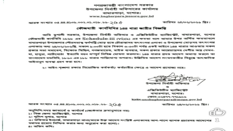 পাল্টাপাল্টি সমাবেশ ঘিরে উত্তেজনা বাঘারপাড়া উপজেলা পৌর সদরে ১৪৪ ধারা জারি…