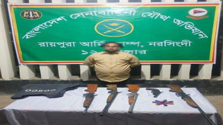 নরসিংদীর রায়পুরা উপজেলার দুর্গম চরাঞ্চলে যৌথবাহিনীর অভিযানে বিপুল পরিমাণ আগ্নেয়াস্ত্র, বুলেটপ্রুফ জ্যাকেট ও গুলিসহ একজনকে আটক করা হয়েছে।...…